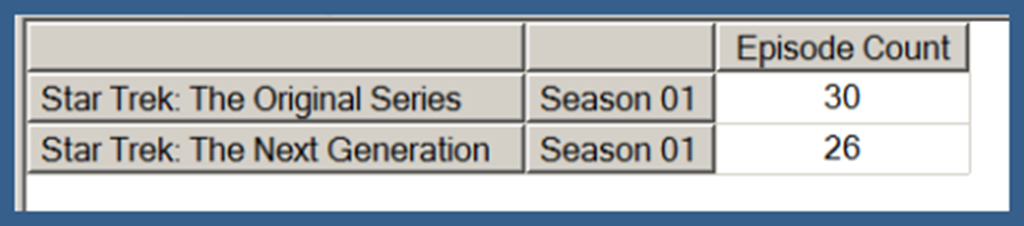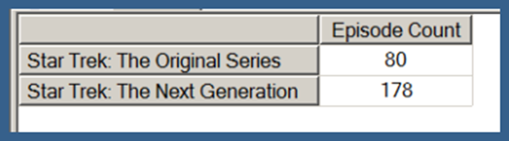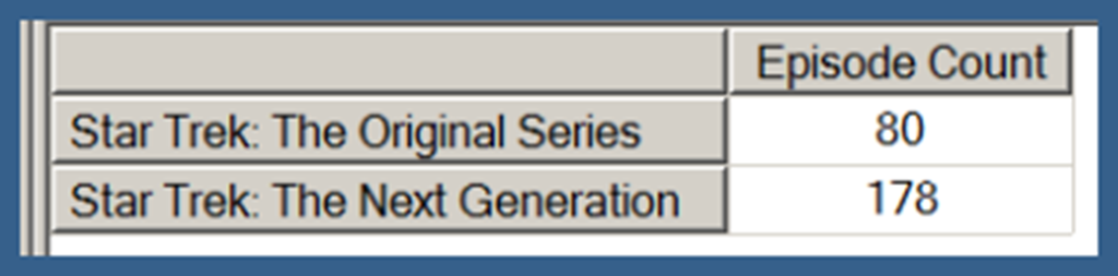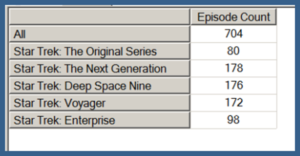 WHERE [Series].[Series Name].[Star Trek: The Next Generation]