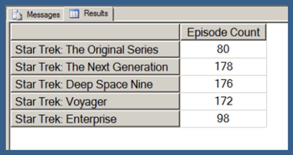 In Query 5, we pass the [Star Trek: The Next Generation] member as the argument.
