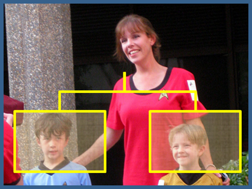 Take a moment to look at the children in this photo. Mr. Blue Shirt appears to be a bit taller than Mr. Yellow shirt. He also seems to have an expression suggesting he may be tired of the Star Trek Vacations this family could take each year. With this in mind, I have decided that Mr. Blue Shirt is the older, and therefore First, child in the hierarchy.
