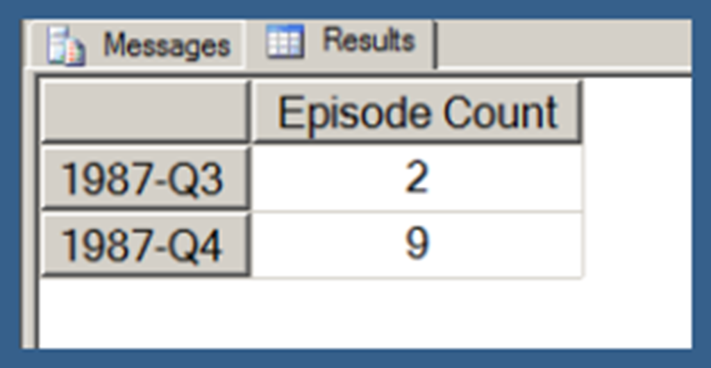 The level in my [Date].[Date Hierarchy] immediately below [Calendar Year] is [Calendar Quarter]. So, Result 4 returns the [Calendar Quarter] members under [Calendar Year].[1987] during which Star Trek: The Next Generation aired original episodes. It first aired in September of 1987, so the first two quarters of that year are filtered from the result set.