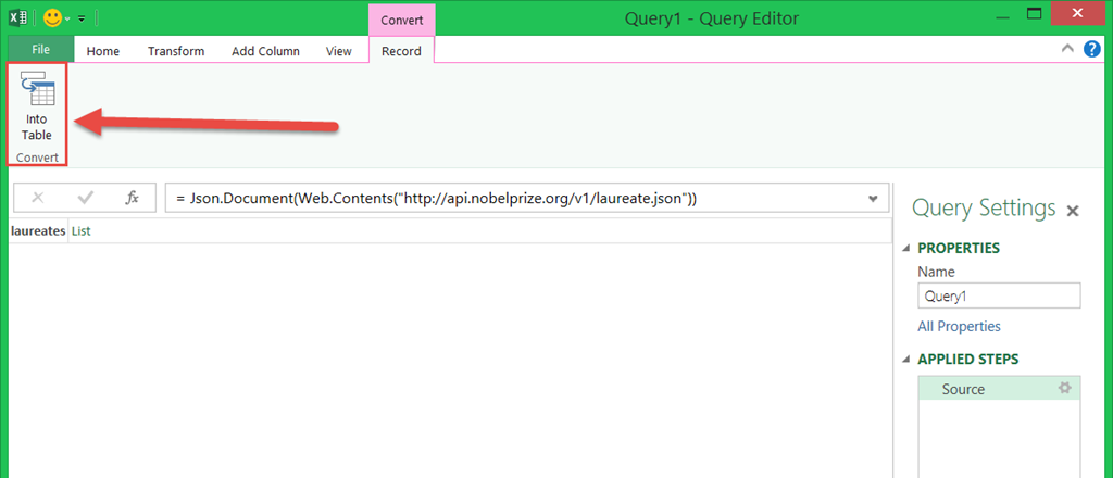 You can see that the Source for the query is Laureate, not the Nobel Prize api that we originally used.