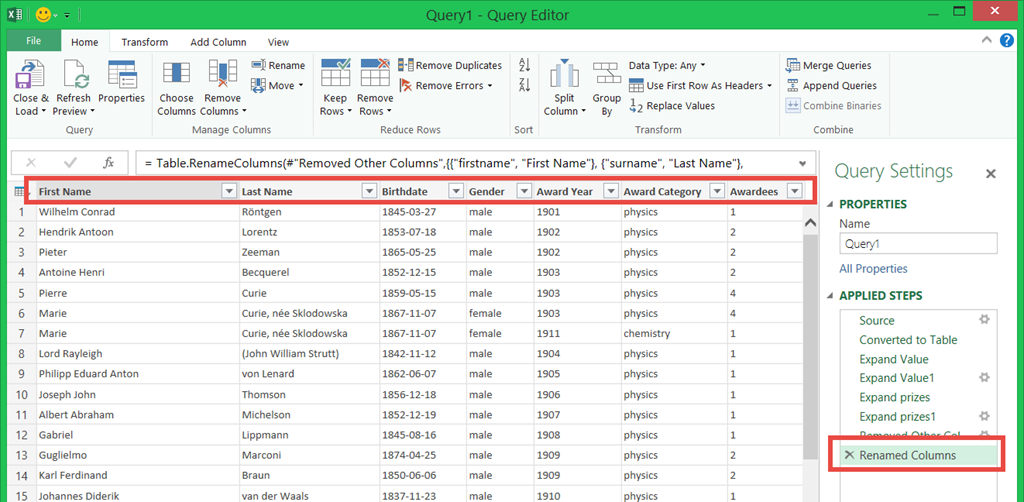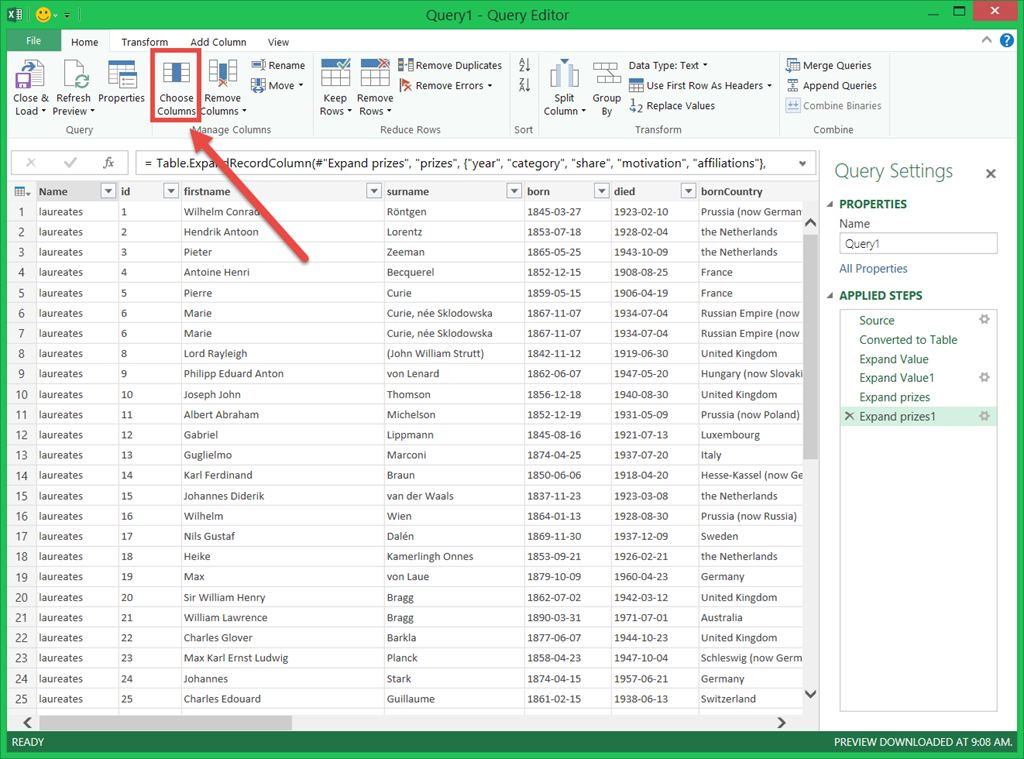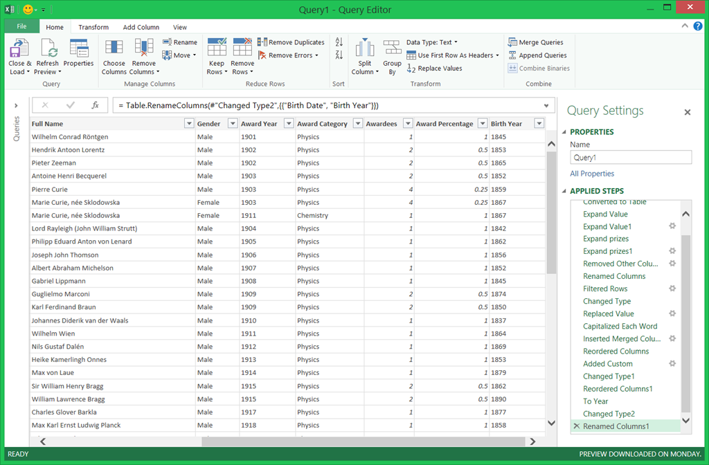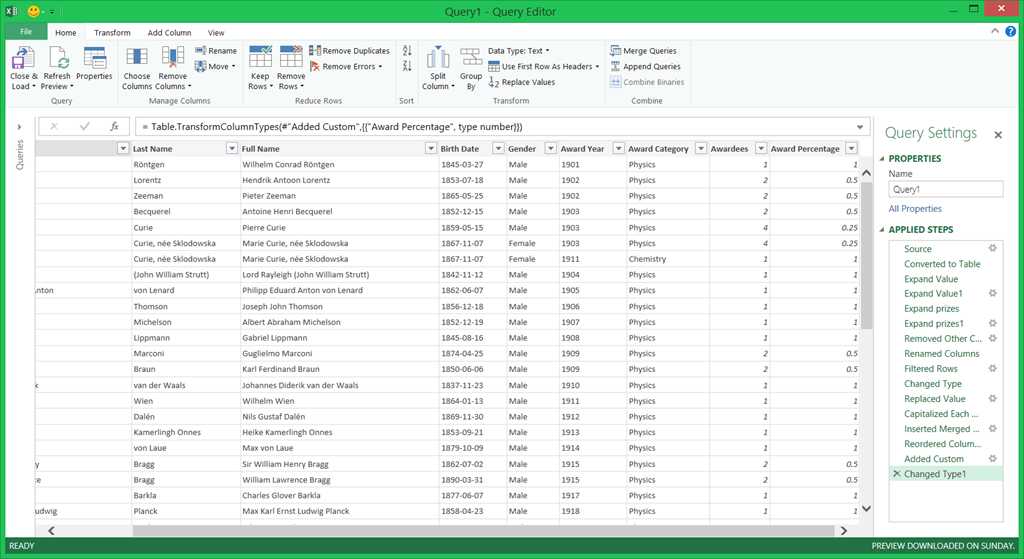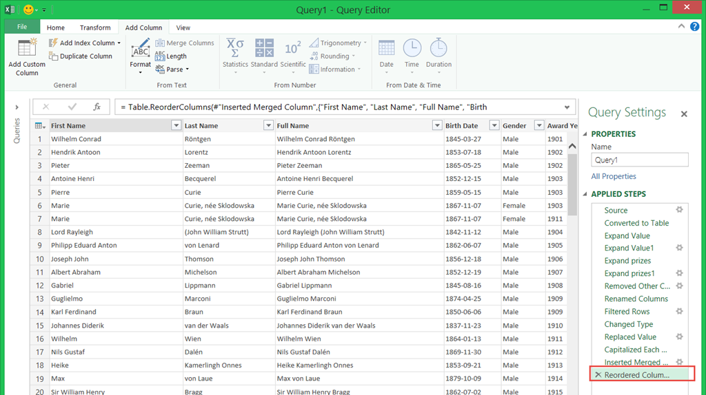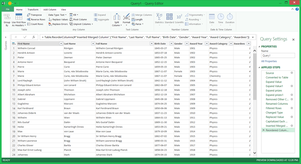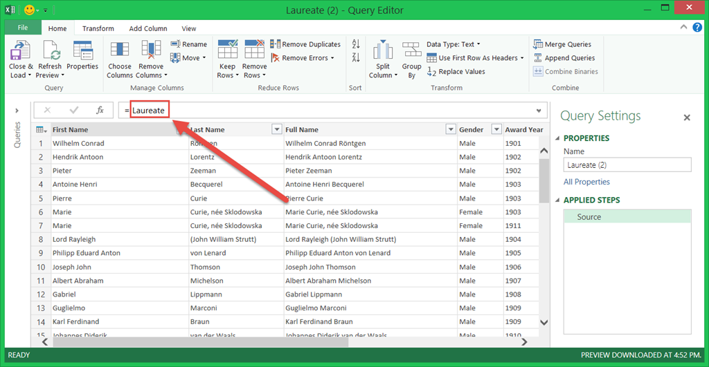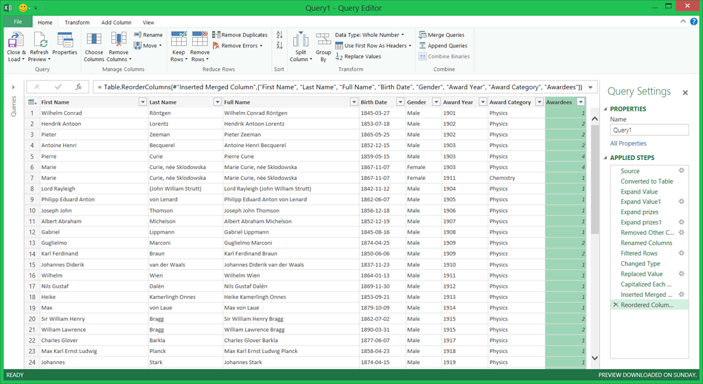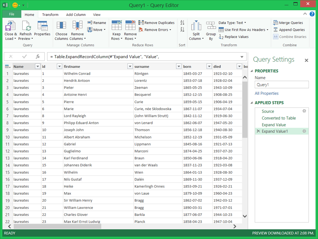 3. Double-click the Laureate (2) query to open it in the Query Editor, as shown in Figure 5.