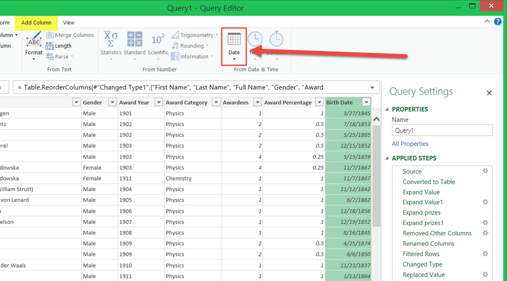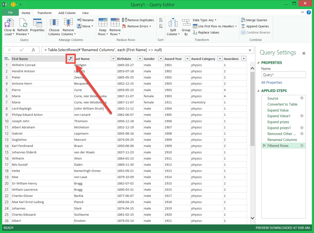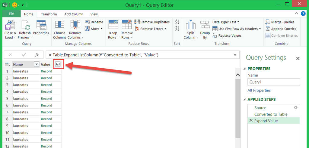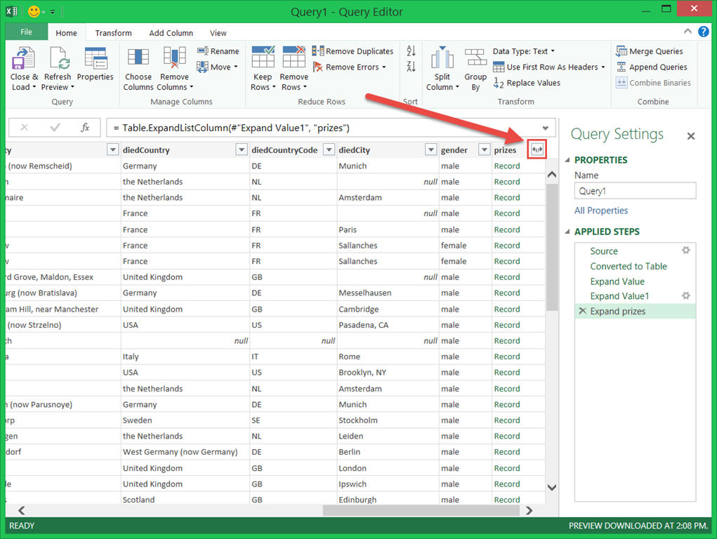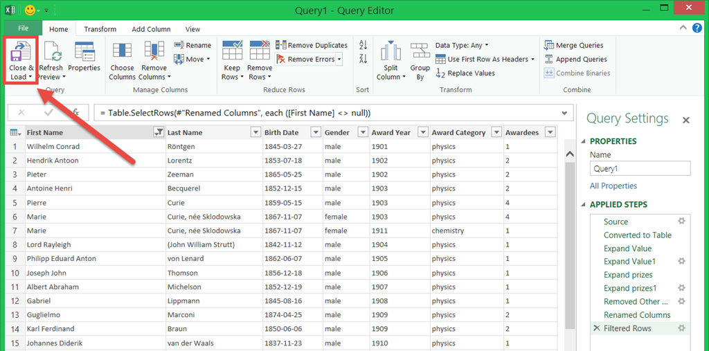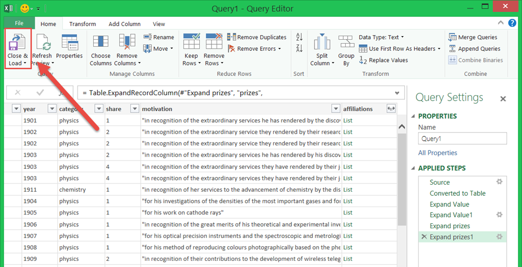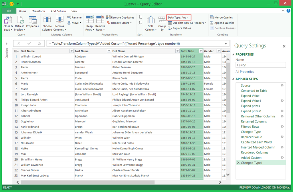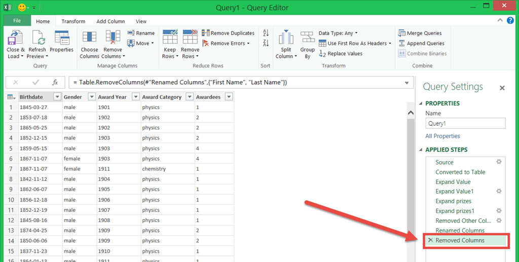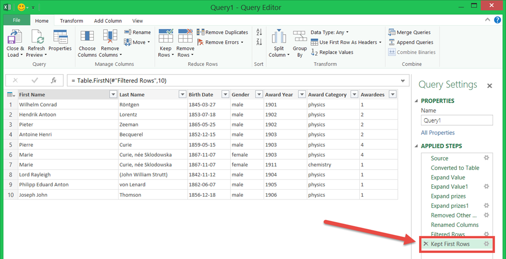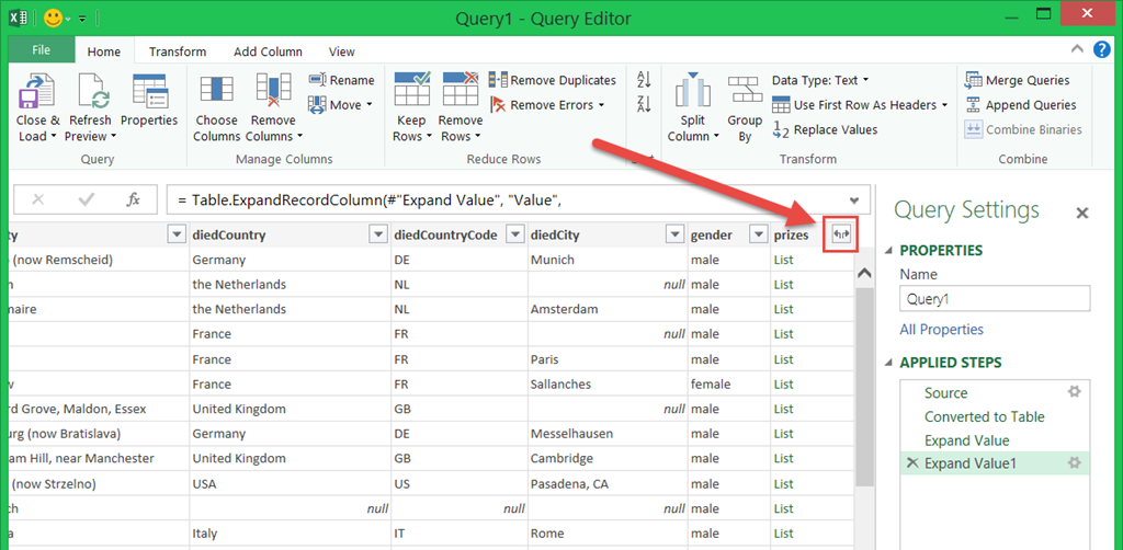 3. Double-click the Laureate (2) query to open it in the Query Editor, as shown in Figure 5.