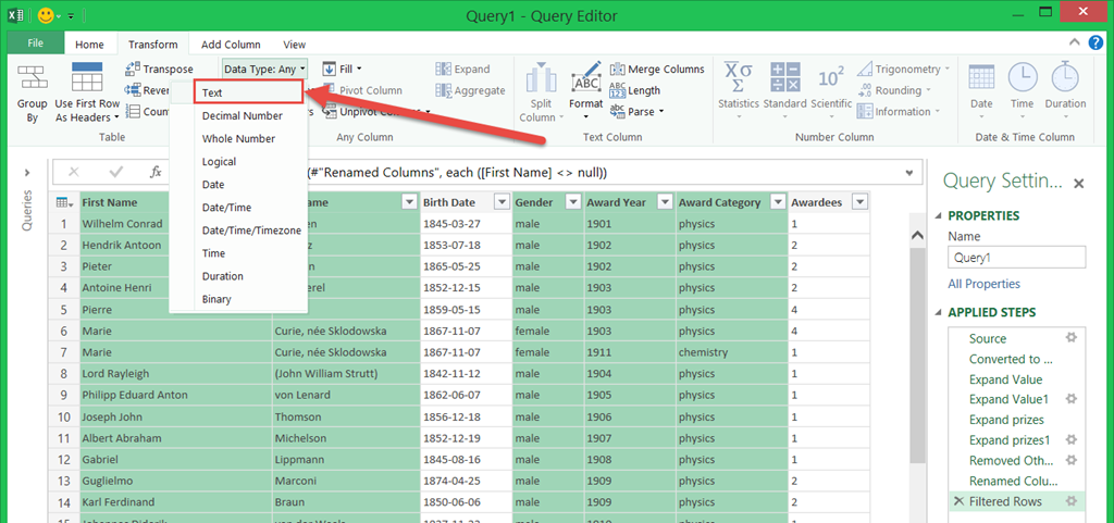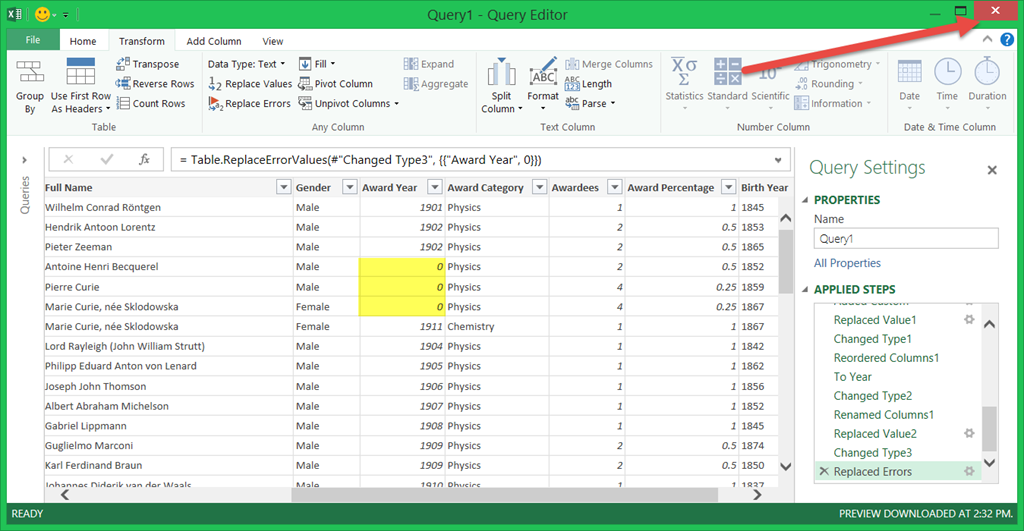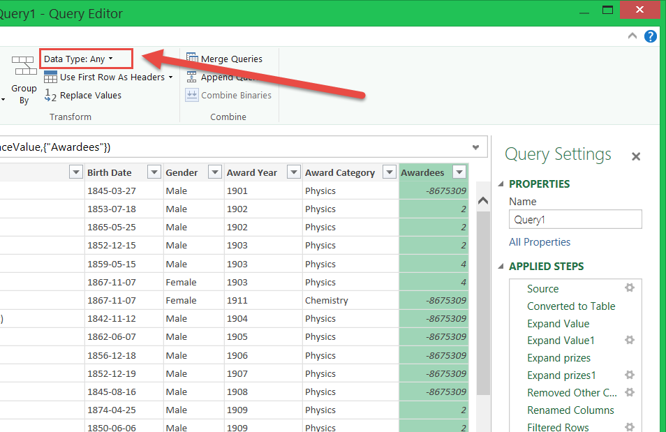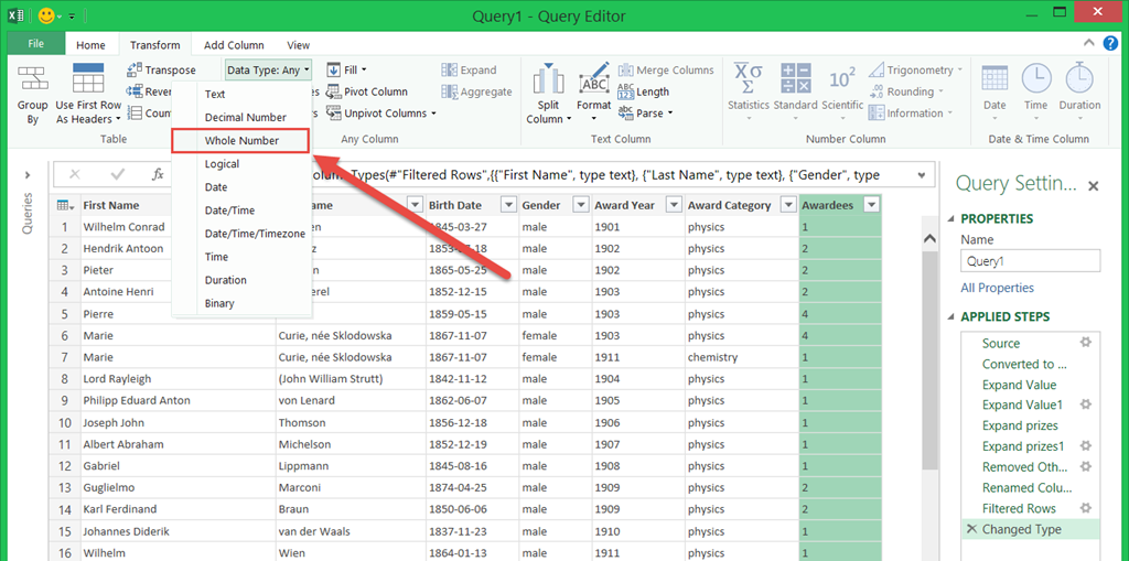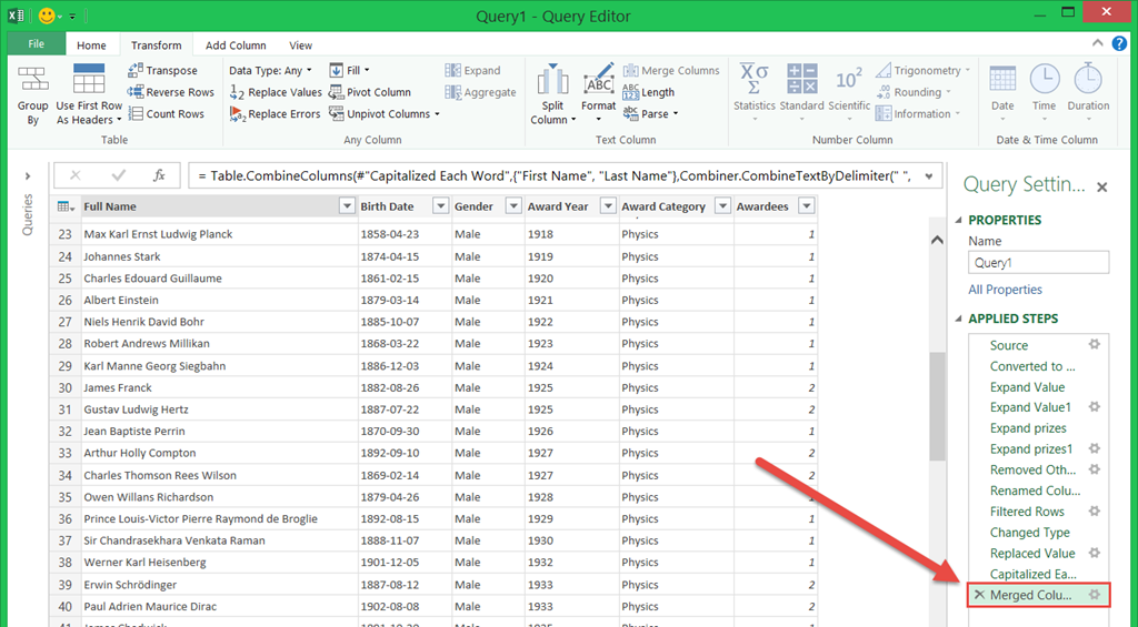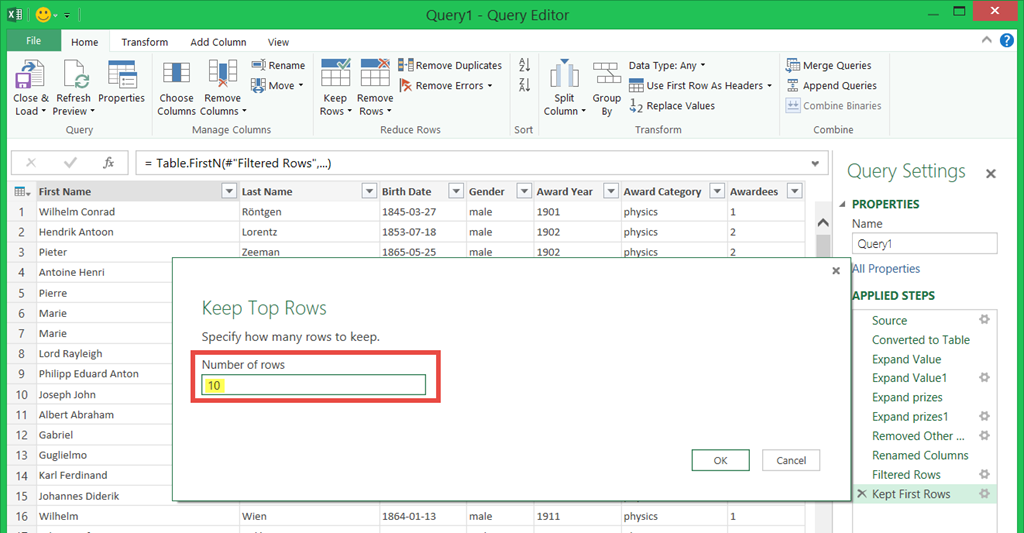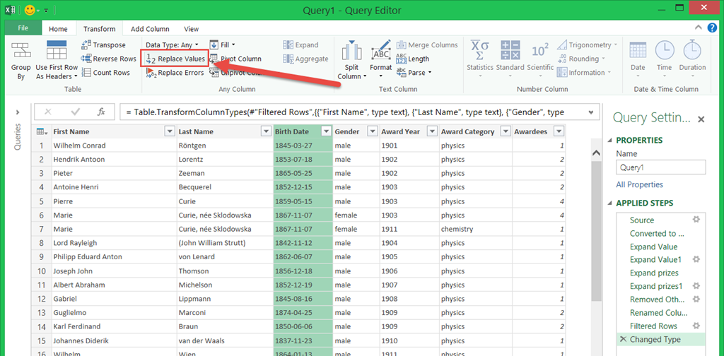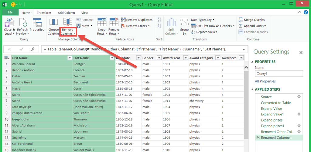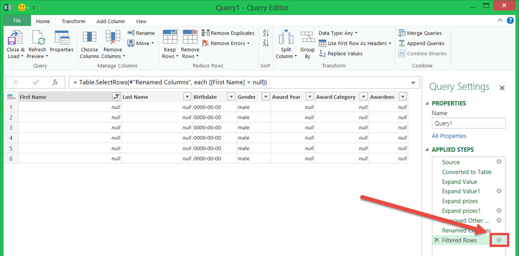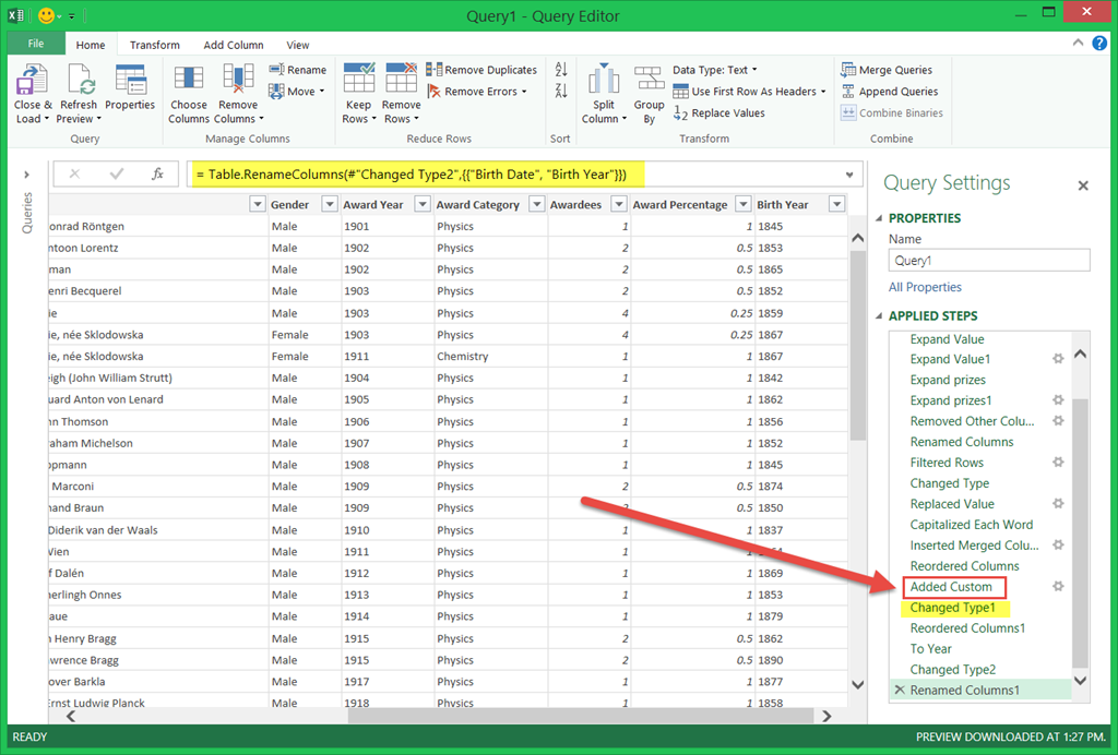3. Double-click the Laureate (2) query to open it in the Query Editor, as shown in Figure 5.