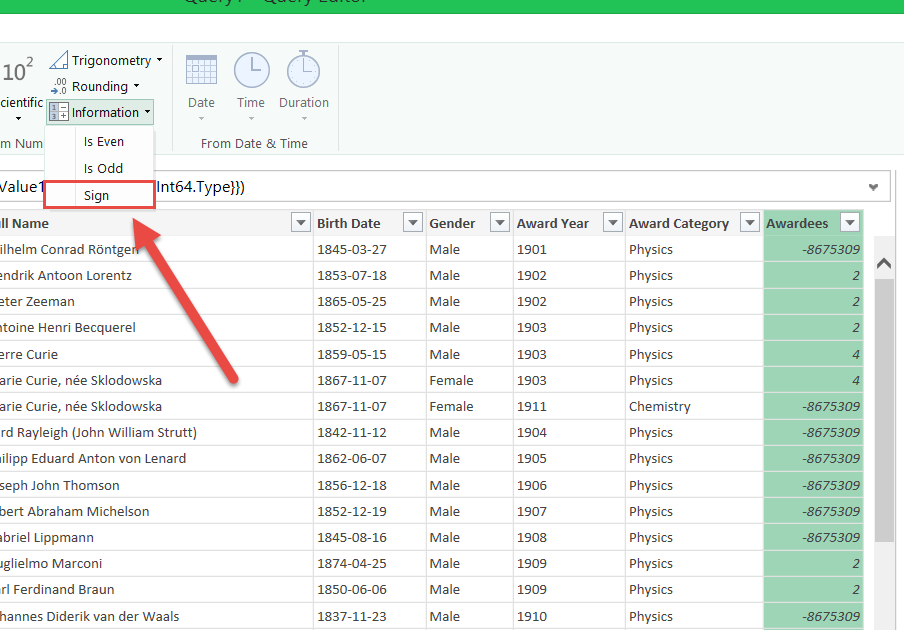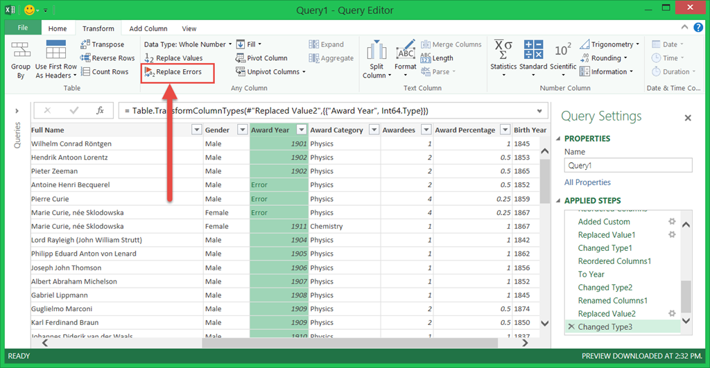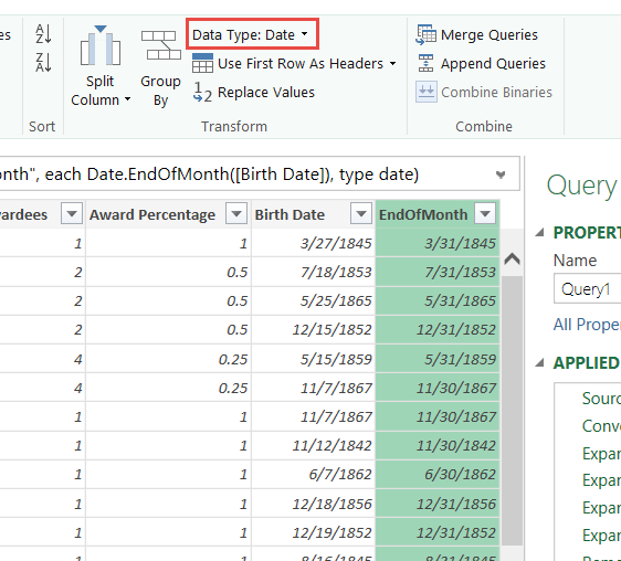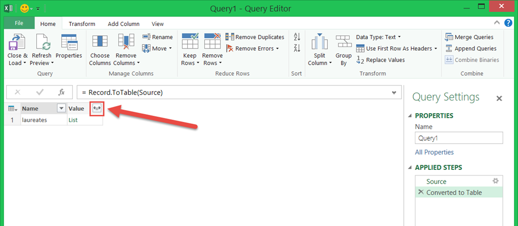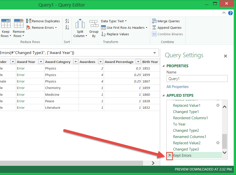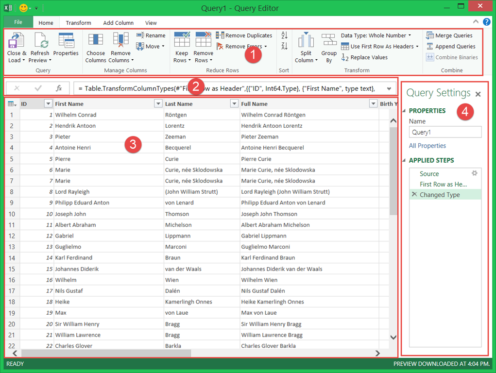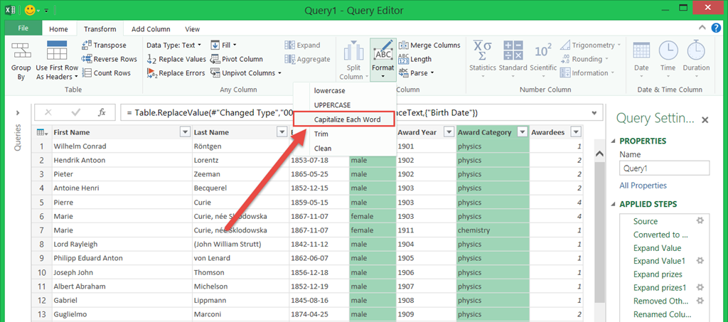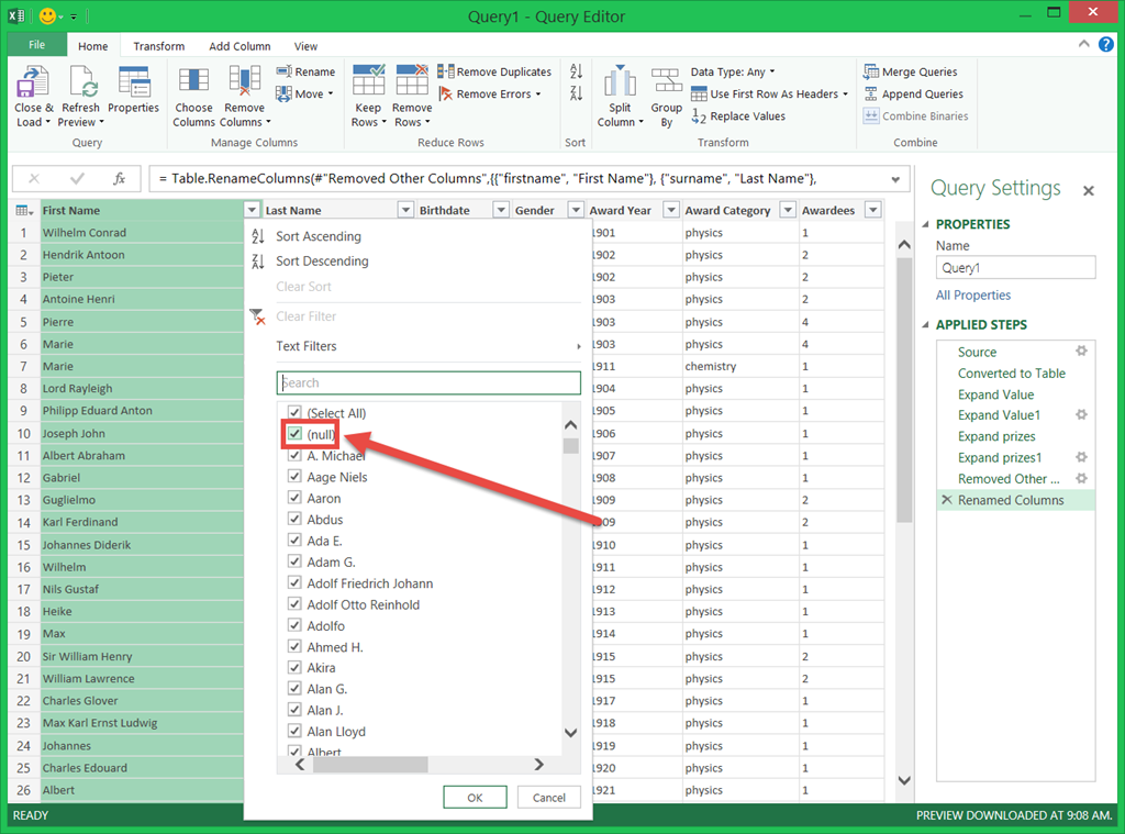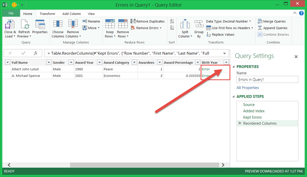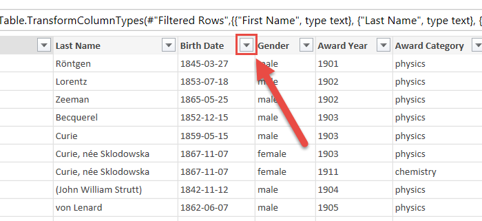 3. Double-click the Laureate (2) query to open it in the Query Editor, as shown in Figure 5.