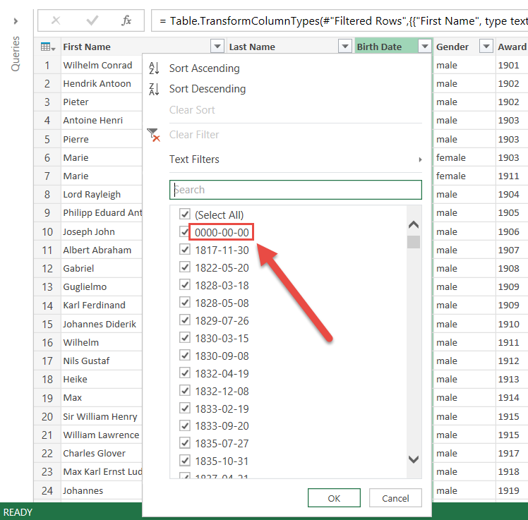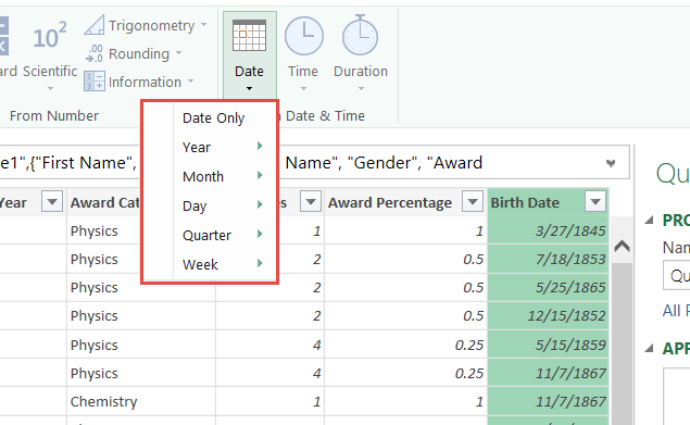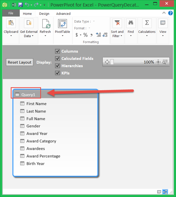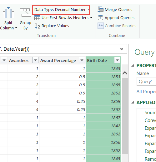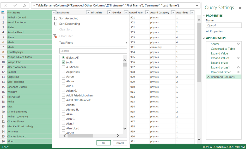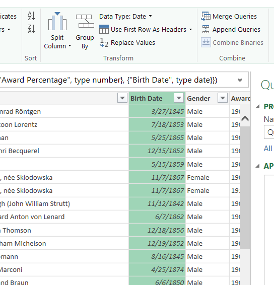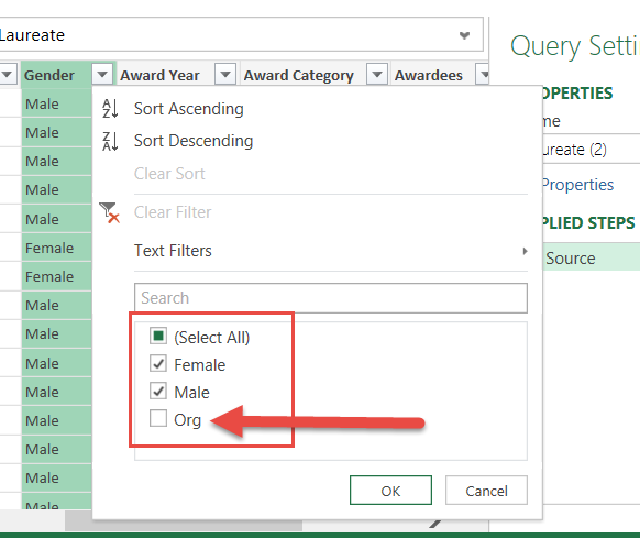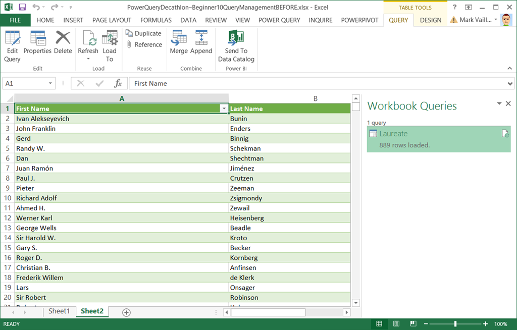 Note: When a Reference is made to a query by another, Laureate in this case, any changes to the referenced query can break the queries that reference it. So, in our example, making changes to Laureate could cause the other queries to become invalid. Just bear that in mind when deciding to use Reference.