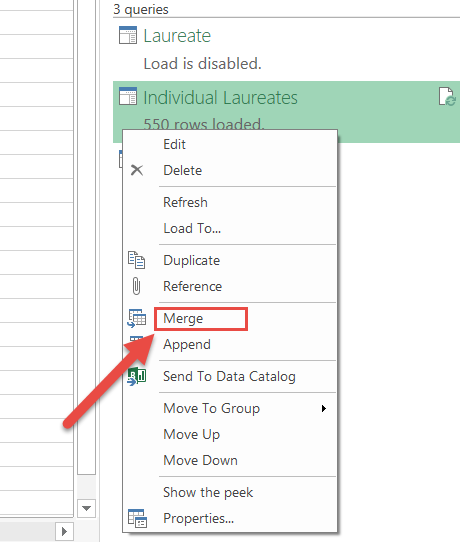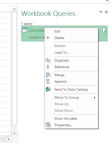 1. Right-click the Laureate query to reveal the menu shown in Figure 1.