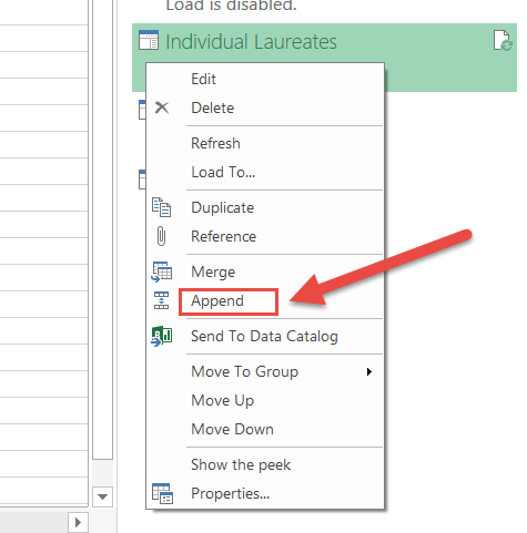 18. Right-click on the Individual Laureates query to reveal the menu shown in Figure 18.