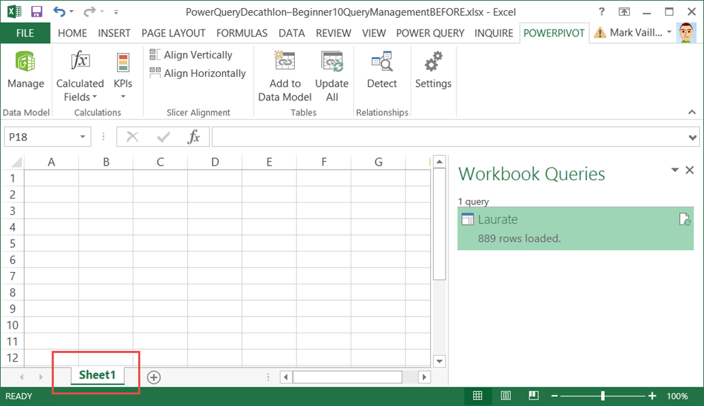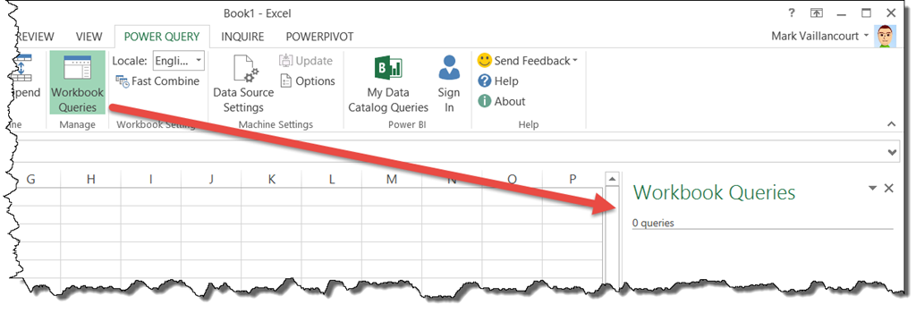 You can download the Excel 2013 file necessary to perform the steps in this post here. To get to the existing query, click the Workbook Queries button on the Power Query ribbon.