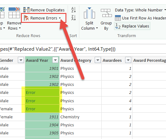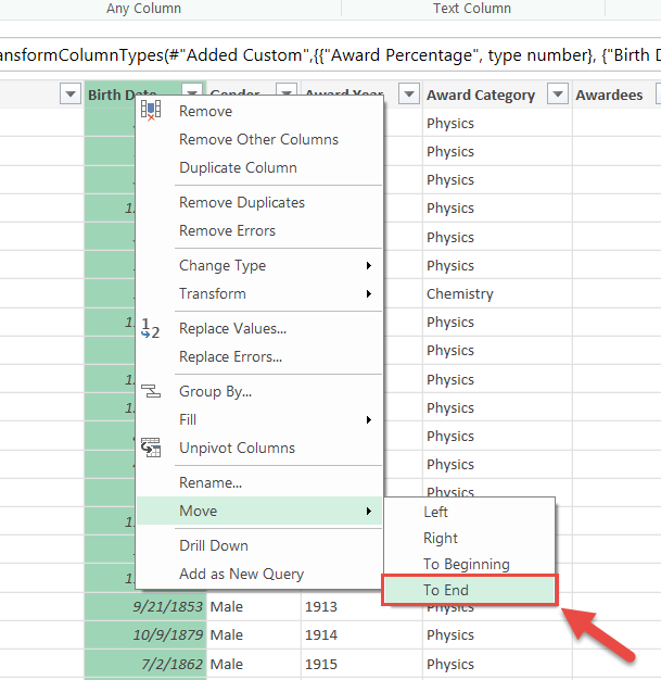 14. Use Ctrl-Click to select both the Award Year and Award Category columns, as shown in