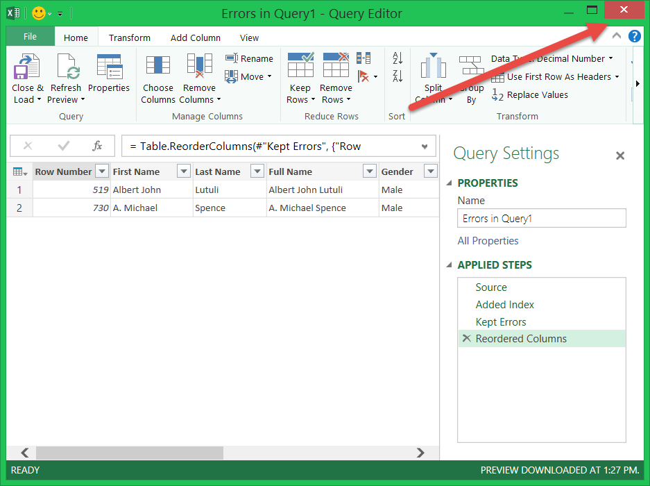 34. Close & Load. The Workbook Query pane should now resemble Figure 31.