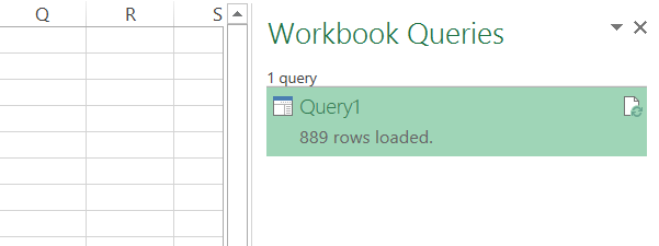 17. Click the Close & Load to save this query. This will save the changes to this query and execute it. The Workbook Queries pane should now resemble Figure 17.