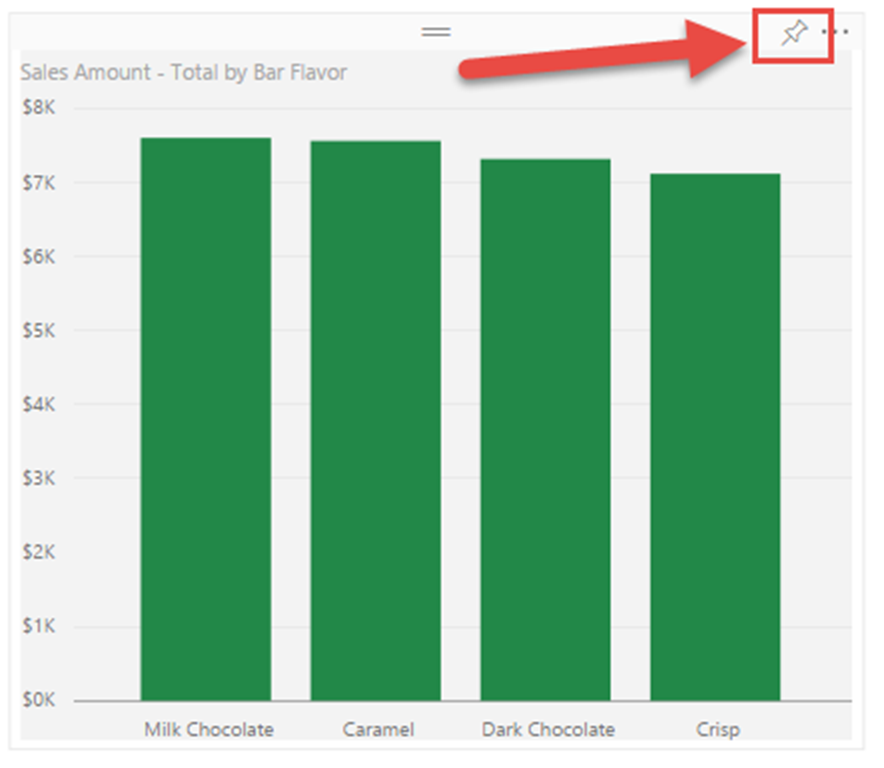 You can add more than one, but we’ll just use one to keep it simple. Our next order of business is to add a measure. For that, we can just choose Sales Amount – Total from the Chocolate Sales table, shown by the Blue arrow in Figure 5. The result is shown in Figure 6.