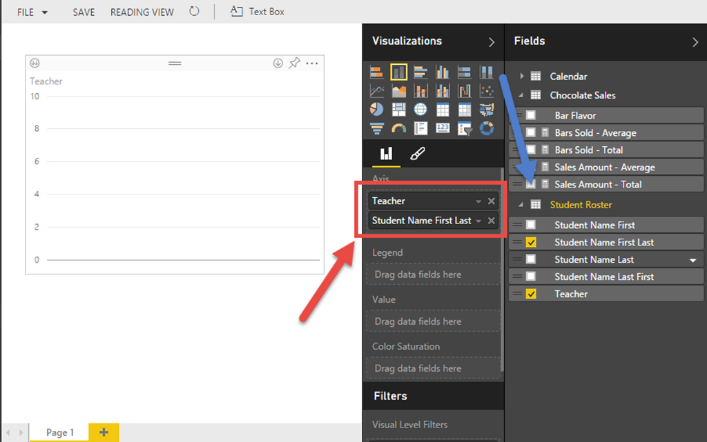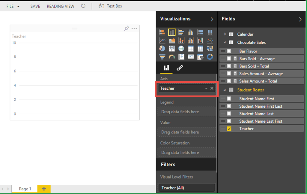 If done correctly, both Teacher and Student Name First Last will be in the Axis box, with Teacher on the top, as in Figure 5.