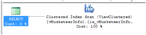 One thing I noticed is that when I first queried the indexed views, the performance didn’t really change. The reason is that the query optimizer typically defaults to expanding the view definition to access the underlying objects directly. I will demonstrate this in a moment. I did find, however, if my index on the view covered all the columns necessary to satisfy my query, then the optimizer did in fact go ahead and use the index on the view instead of expanding.